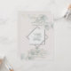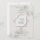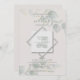 WEDDING INVITATION | Watercolor silver dollar eucalyptus leaves in sage green and transparencies of willow eucalyptus leaves with a central geometric silver box at a 45 degree angle holding a square off white notice - all set on a warm latte beige background. A combination of hand written calligraphy and serif text makes this elegant and modern. Another Bridal design created by © WhimsicalArtwork™