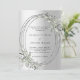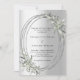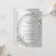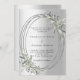 A faux silver looking background decorated with sage green greenery. A faux silver frame. Personalise and add your names and details.