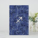 A chrome like Sagittarius zodiac symbol on a vibrant navy blue digital camouflage design texture print background. A modern urban racy design for a great custom birthday gift idea.