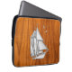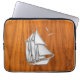 Silver Sail Boat on Teak Veneer Decor Laptop Sleeve