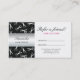 Refer a Friend card in black and faux silver with a pattern of scissors.