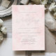 This simple, modern wedding invitation features real silver foil text on a pale blush pink watercolor wash background, with the words "the Wedding of" in elegant handwritten calligraphy script. Add the names of the bride and groom in serif and the wedding details in sans serif font. The blush watercolor wash is repeated on the back of the card.