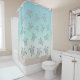 This elegant nautical shower curtain features silver sea turtles on a beach gradient background in sand/beige and turquoise.