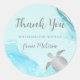 This tropical birthday thank you sticker features an elegant silver sea turtle on a turquoise teal silver ink background. Customise it with you name.