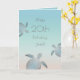 Elegant silver turtles on a turquoise beach style background. With a custom birthday text in an elegant font. Modern coastal design for him and her.