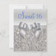 Elegant custom silver Sweet 16 birthday party invitations with a beautiful silver printed sequins pattern, a cute shiny silver printed bow and ribbon and a pretty printed diamond bling jewel and royal blue text. These classy glamourous invites are decorated both sides. Beautiful, chic, trendy, modern invitations. PLEASE NOTE: ALL INVITES ON ZAZZLE HAVE FLAT PRINTED IMAGES. Text, font and colour of font can all be customised. If you need assistance customising your product please contact me through my store. I will be happy to help.