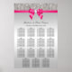 Elegant custom silver and pink wedding seating chart with a beautiful glittery silver printed image sequins jewels, gems pattern, cute, sophisticated shiny pink printed bow and ribbon and pretty digital diamond bling jewel with gray text on a silver gradient background. If you need any assistance customizing your product please contact me through my store and I will be happy to help. PLEASE NOTE: These are flat printed graphics - not real bows, jewels or sequins. I have matching products in my store.