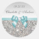 Silver Sequins Teal Bow and Diamond Wedding Classic Round Sticker