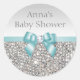 Silver Sequins Teal Bow Diamond Baby Shower Classic Round Sticker