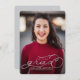 A full-bleed single photo graduation announcement with faux silver foil script. The name, year and school name are all editable.