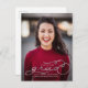 A full-bleed single photo graduation announcement postcard with faux silver foil script. The name, year and school name are all editable.