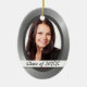 One side of this keepsake ornament features your graduate's photograph framed in an attractive steel grey metallic looking background, which is complementary to most portraits. A white banner at the bottom holds your easily customised text. The other side is matching silver grey. If you'd like to add text, you may do so by choosing "Customise it". **Please note -- the image is printed on the surface, and the product contains no actual metal or metallic substance.**