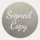 Create your own "signed copy" stickers against a printed silver metallic foil photo effect. Customise the font style, colour and size. Try black text rather than the white.