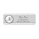 A seamless digital floral pattern of silvery grey and snowy white on top, and aged vintage silver and grey satin style stripes image on the bottom, with a ribbon overlay with a customisable monogram text seal.
