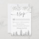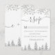 Time to celebrate your winter wonderland wedding theme with this luxury silver glitter snowflakes sparkles and silver glitter pine tree forest on an elegant festive white background, featuring a modern cool script font typography. Perfect rsvp card for your winter wonderland wedding.