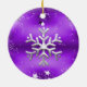 This very festive Christmas tree ornament features a purple pattern of glittering Christmas stars with a large, silver snowflake on both sides.
