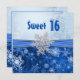 Silver snowflake on a blue snowflakes background Sweet 16 Birthday Party Invitation. Please note: ribbon and snowflake are the printed images.