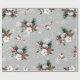 Silver Snowflakes, Cotton Balls, Holly, Evergreen Wrapping Paper