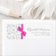 A winter wonderland themed return address label featuring a printed pink ribbon bow illustration and silver snowflakes. Designs are flat printed illustrations/graphics - NOT ACTUAL RIBBON.