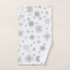 Christmas Classic silver glitter snowflakes and dots glow white pattern, filled with multiple unique silver-grey stars, dots and snowflake geometric shapes, faux shining silver glitter and glowing white colour, white background. This silver snowy sky evening winter feel snowflakes artwork, is perfect for winter season Christmas holidays decor.