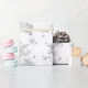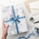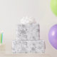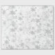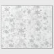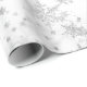Silver snowflakes wrapping paper featuring large and shimmering silver snowflakes on a white Carrera marble background.