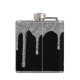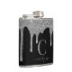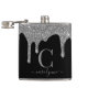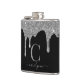 Silver Sparkle Glitter Drips on Black Monogram Hip Flask
