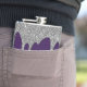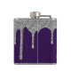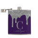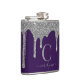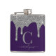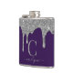 Silver Sparkle Glitter Drips on Purple Monogram Hip Flask
