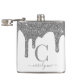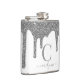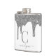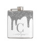 Silver Sparkle Glitter Drips White Monogram Hip Flask