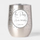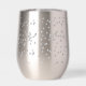 Three separate areas of customisation are featured on this silver sparkles wine tumbler.