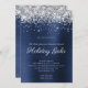 Silver Sparkly Glitter Navy Blue Foil Holiday Invitation
