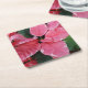 Silver Star Marble Poinsettias Pink Holiday Floral Square Paper Coaster