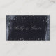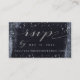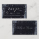 A sumptuous black watercolor night sky amidst sparkling silver stars cascading onto classic English script calligraphy with a splattering of shimmering silver ink spots online RSVP card.