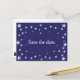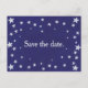 Painting of silver stars forming a fun border, on royal navy blue, is printed on custom Save the date Postcards. The text can be easily customised on the template form. There are matching wedding items in this store.