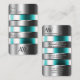 Silver Teal Glass Engraving Letters with Monogram Business Card