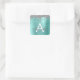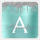 Silver Teal Glitter Brushed Metal Monogram Name Square Sticker