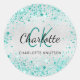 A faux silver metallic looking  background. Decorated with teal, sea green faux glitter dust. Personalise and add your first name, monogram initials and full name.