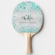 A stylish faux silver metallic looking background, decorated with teal, sea green faux glitter dust. Personalise and add your first name, monogram initials and full name.