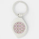Silver teardrop keychain with a colorful mosaic pattern. Displayed on a light surface, alongside keys, a notebook, pencil, and a smartphone.