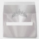 This design features a tiara on a pearl white background on the inside flap, and decorative silver scrolls. Envelope outside is available in different pastel colors. Personalize the return address on the back flap. Designed to coordinate with the "Cream Floral on Pastels" Quinceanera Collection. To change details, click «Personalize». To move the text or change the text size, font, or color click «Click to customize further»