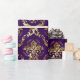 Elegant gold floral damask pattern over a deep purple background.