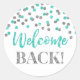 Welcome back stickers with Turquoise and Silver confetti pattern.