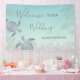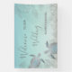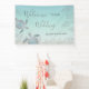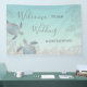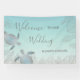 Wedding welcome reception banner with two elegant silver turtles and tropical leaves on an abstract beach style background. Customise it with your bride and groom names and your wedding date. For your hawaii wedding, summer wedding, beach wedding.