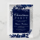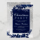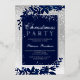 nvite your guests to a chic and festive celebration with this elegant navy blue and silver foil Christmas party invitation. The design features shimmering silver accents and botanical leaves silhouettes framing the invitation's text. Perfect for a sophisticated holiday gathering, this invite sets the tone for a stylish and memorable event.
