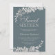 Silver typography floral dusty blue chic Sweet 16 Invitation