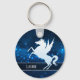Silver Unicorn on Sparkly Blue Monogram Key Ring