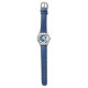This is a pretty watch that any little girl would love! It features a silver silhouette of a rearing unicorn, with a star sparkling blue night sky behind it. Her name is also in silver on a semi-transparent band that runs across the bottom of the image. The blue numbers on the outside silver border makes the watch easy to read.