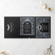 Set the stage for a hauntingly elegant event with these gothic all-in-one invitations. Inspired by vampire cathedrals featuring striking silver and black designs, it is perfect for a dramatic and unforgettable celebration. They are ideal for lovers of dark romance and timeless allure. The silver featured in this product is NOT real foil and is printed flat.