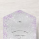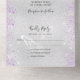 A faux silver looking background, decorated with sparkling purple faux glitter and butterflies. Personalise and add your names, monogram and wedding details. Black coloured letters.