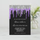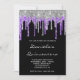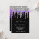 Silver Violet Glitter Drips Black Quinceañera Invitation