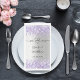A faux silver looking background. Decorated with violet, lavender coloured faux glitter sparkles. Personalise and add your names and a date. Mr and Mrs with a heart.
